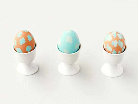 Zlahka bomo uporabili idejo Brit + Co, saj ne potrebuje nobenega barvanja, je enostavna in otroci ne bodo za seboj pustili nobene packarije. Enostavno nanesite otroške tatuje, ki jih zmočite in odlepite, kot bi to naredili na svoji roki. Namesto živahnih barv, boste dobili jajčka z različnimi motivi dinozavrov, junakov, živali in še več.